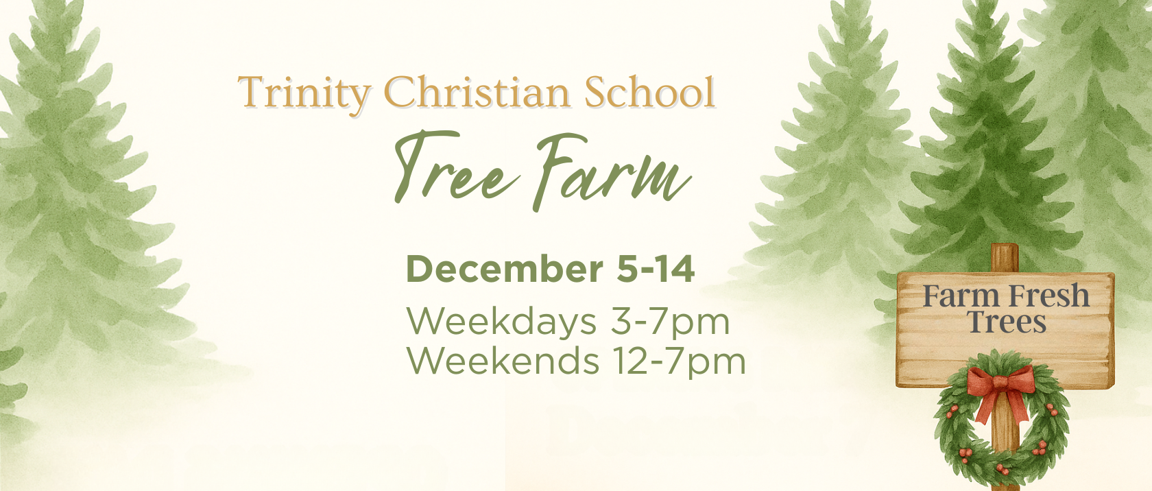 Trinity Christian School 9625 N Military Trail, Palm Beach Gardens, FL, United StatesOur beloved pumpkin patch has been transformed into the Trinity Tree Farm. Come pick out your perfect Christmas tree and help support TCS this holiday season! Pre-orders available November 5 - December 5 with a pick up at the Tree Farm beginning December 5. Tree Pricing Table Top $35 5-6 foot $75 6-7 foot $85