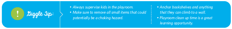 Giggle Tip: Use washable markers and paints, chalk or water paint sheets for peace of mind and easy clean up!Â